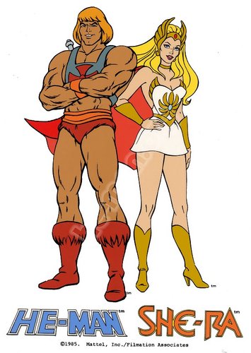希瑞、希曼:这个是两部动画,貌似唯一区别就是男版跟女版,坏人boss都长得差不多。经典台词是拿剑指天,喊“赐予我力量吧!”然后就开始换装秀,再用剑指一只胆小的老虎,那个老虎立马就变异了,变成希曼的座驾了。当年小朋友经常拿小树枝往天上指,然后喊经典台词,然后再把小木棍指向另外一个小朋友,那个被指的就成了冤大头座驾….
