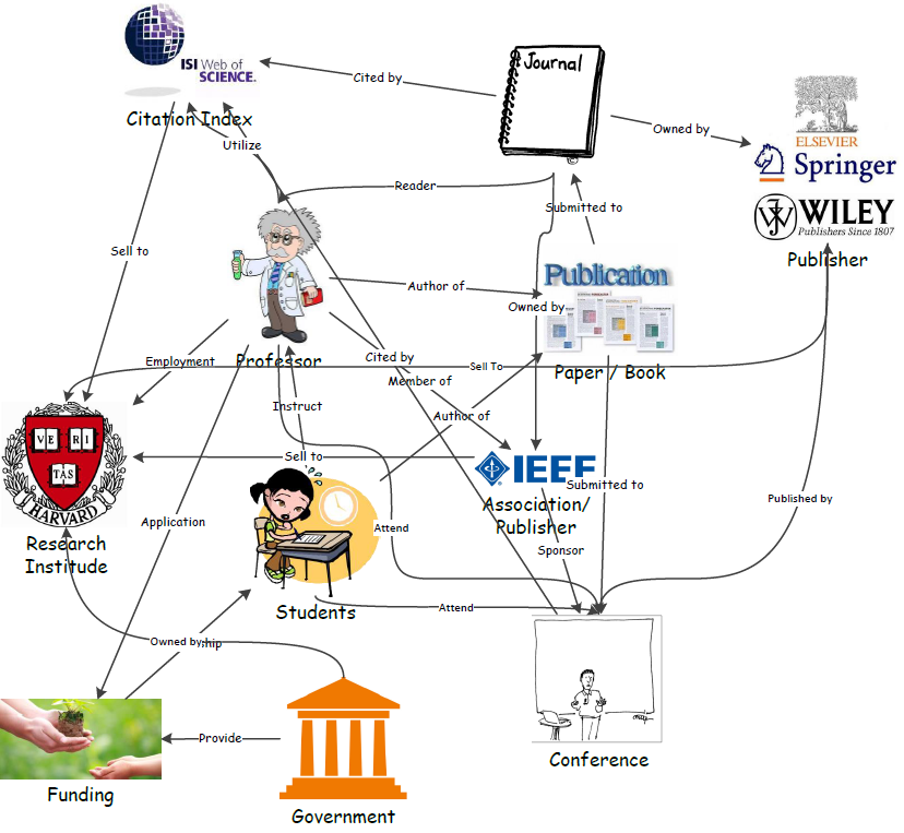 学术圈的那点事 March 13, 2012 今天花了一点时间,终于把这半年来我了解到的关于学术圈的一些错综复杂的关系整理了一下。形成了下面一张图,点小图看大图: Fig 1. 错综复杂的关系网络 当然,仅限个人理解,不一定对。为了跟企业界隔离,暂时没有包含Industry的元素,也不包含“中国特色”部分。 如果有错,欢迎各位留言批评指正。 PS:由于关系太错综复杂,用Visio的自动排版,试验了各种排列组合排版布局我都不满意,大家就对付着看吧。